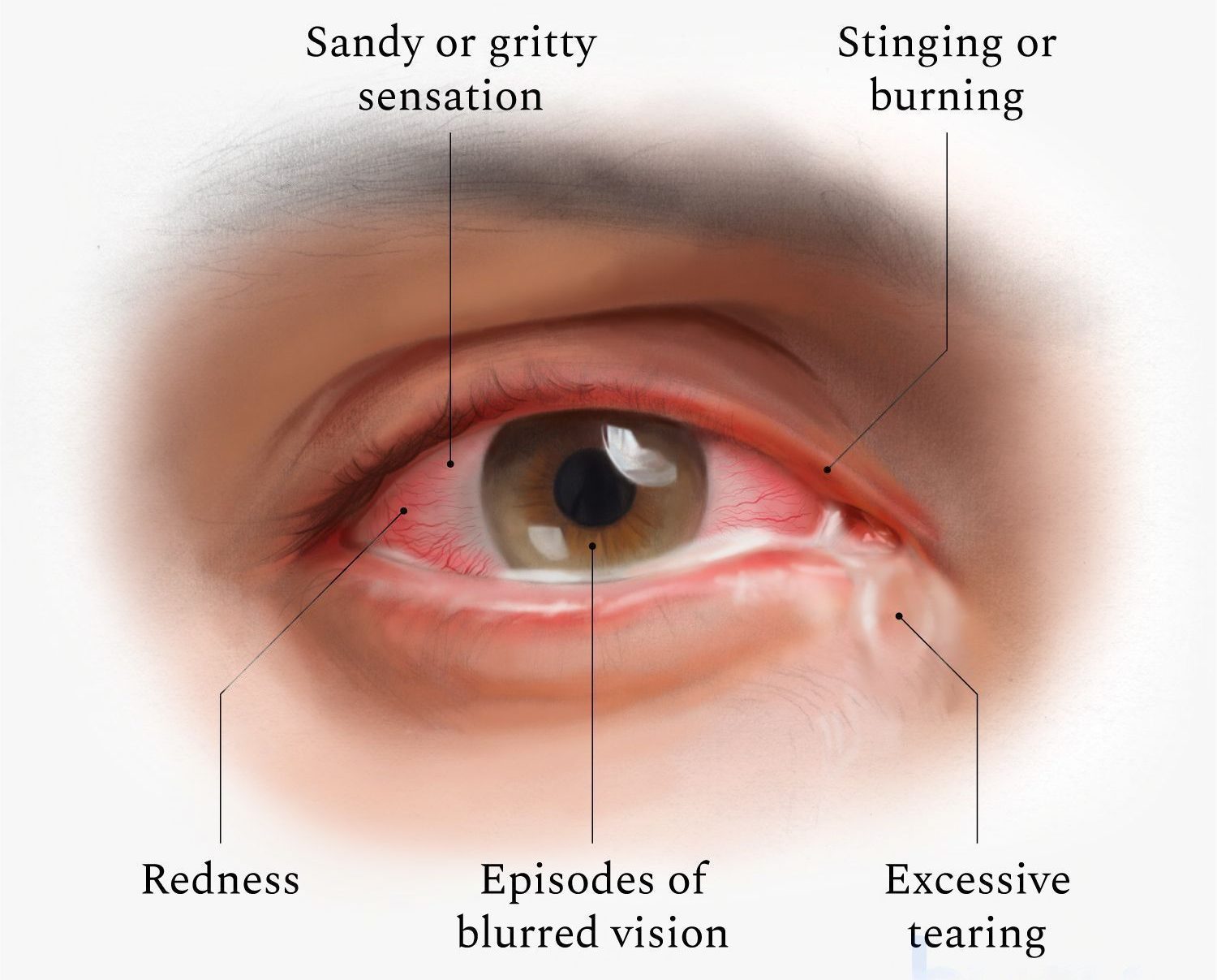 Dry Eye is a collection of symptoms that make up an eye condition that stems from an imbalance in the quantity or quality of tears bathing the eye. These symptoms include dry, red, gritty, and even watery eyes.